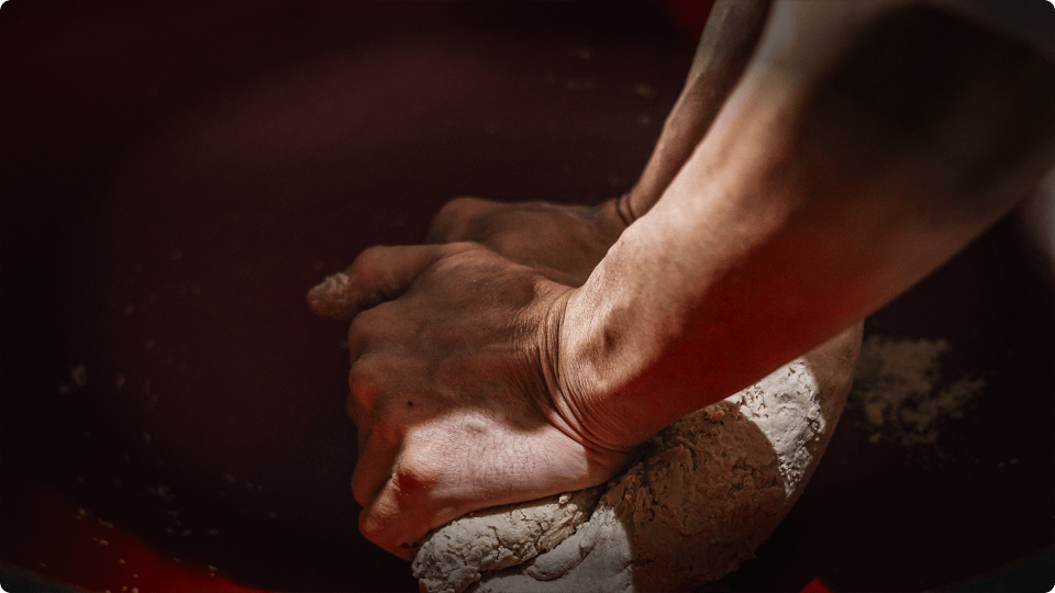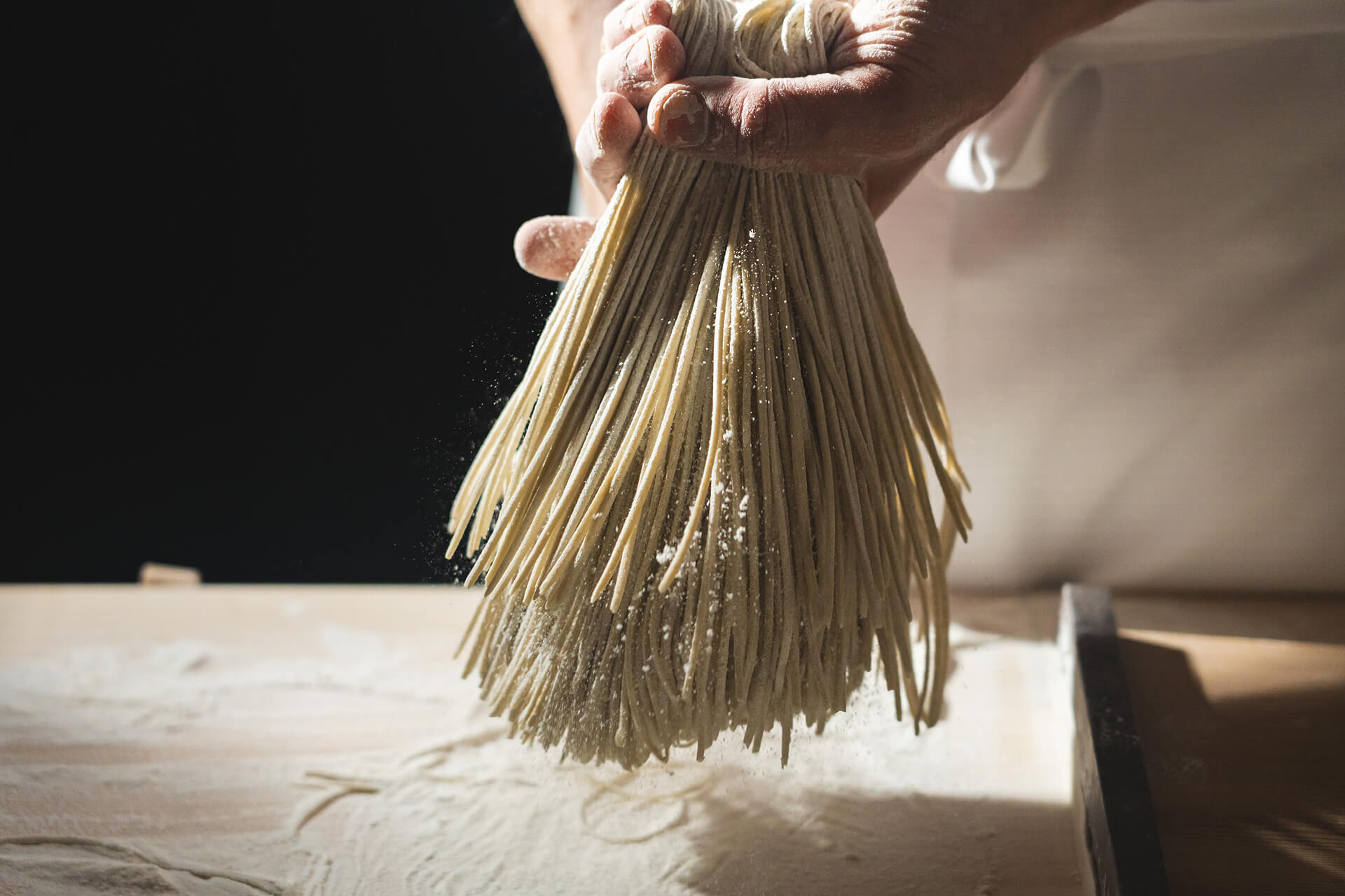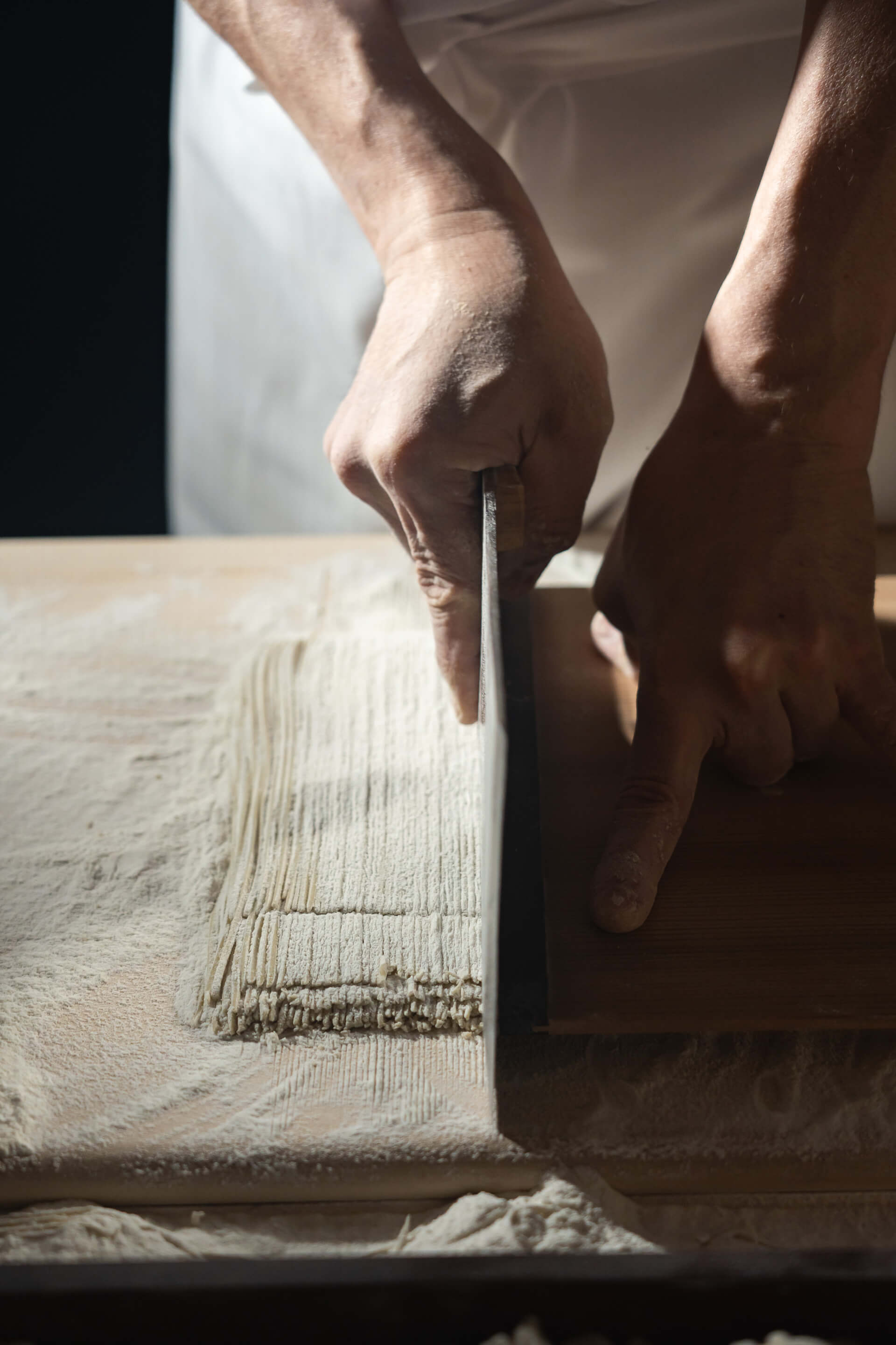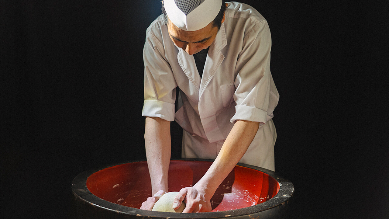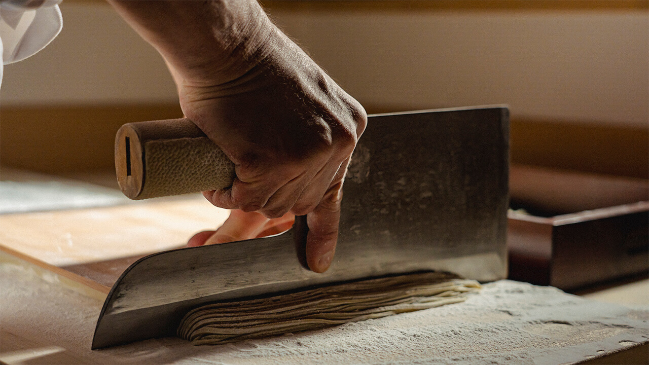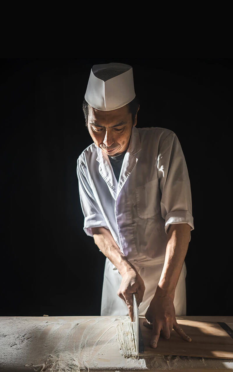 丁寧に練り、打ち、延ばし、折りたたみ、切ることで、