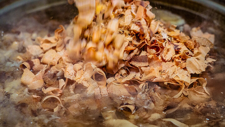 削った瞬間から香りは逃げていく──だから、時間との勝負。香りを逃さず、毎朝の手仕事で出汁の“ピークの香り”を閉じ込めます。
